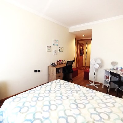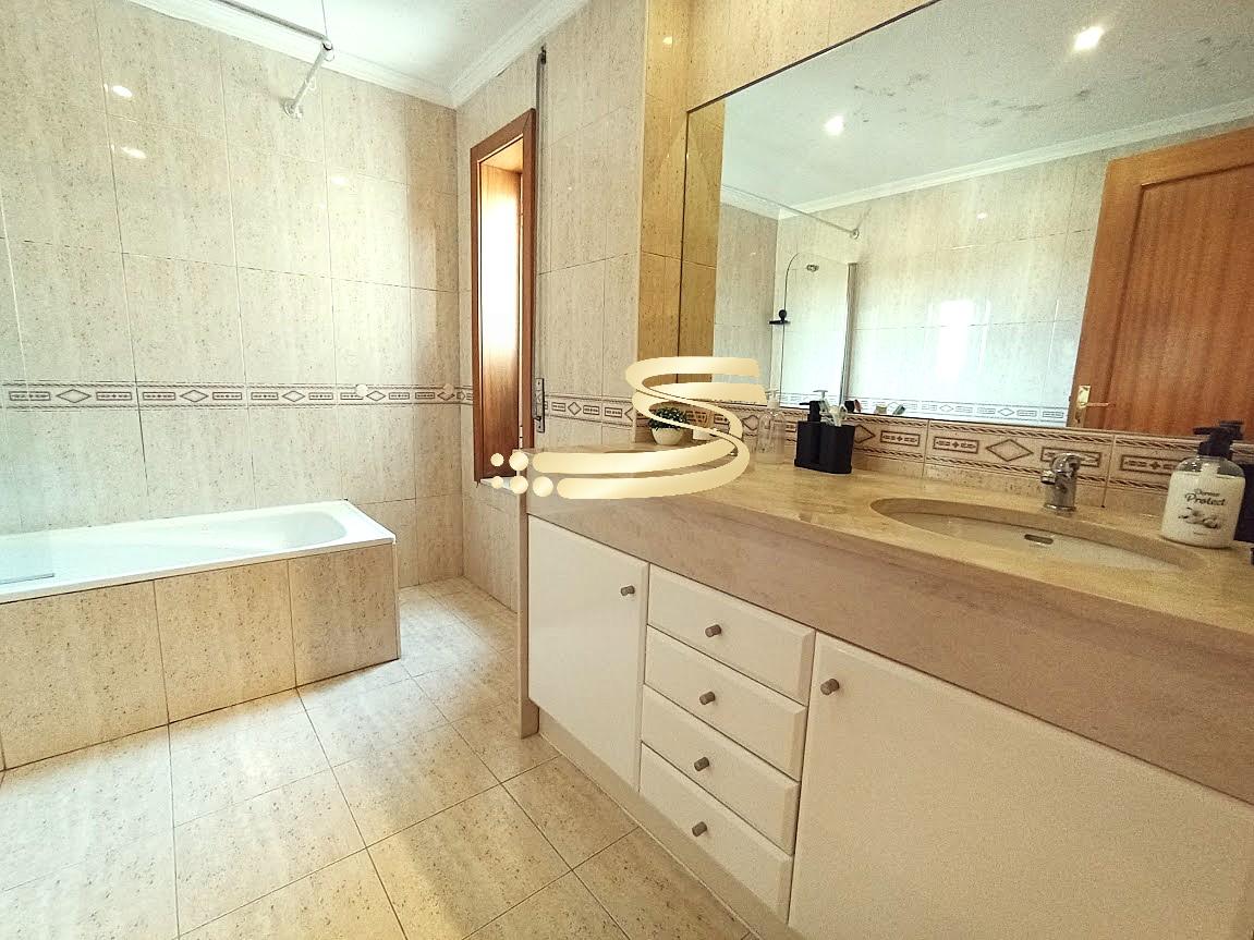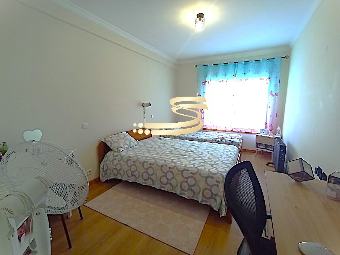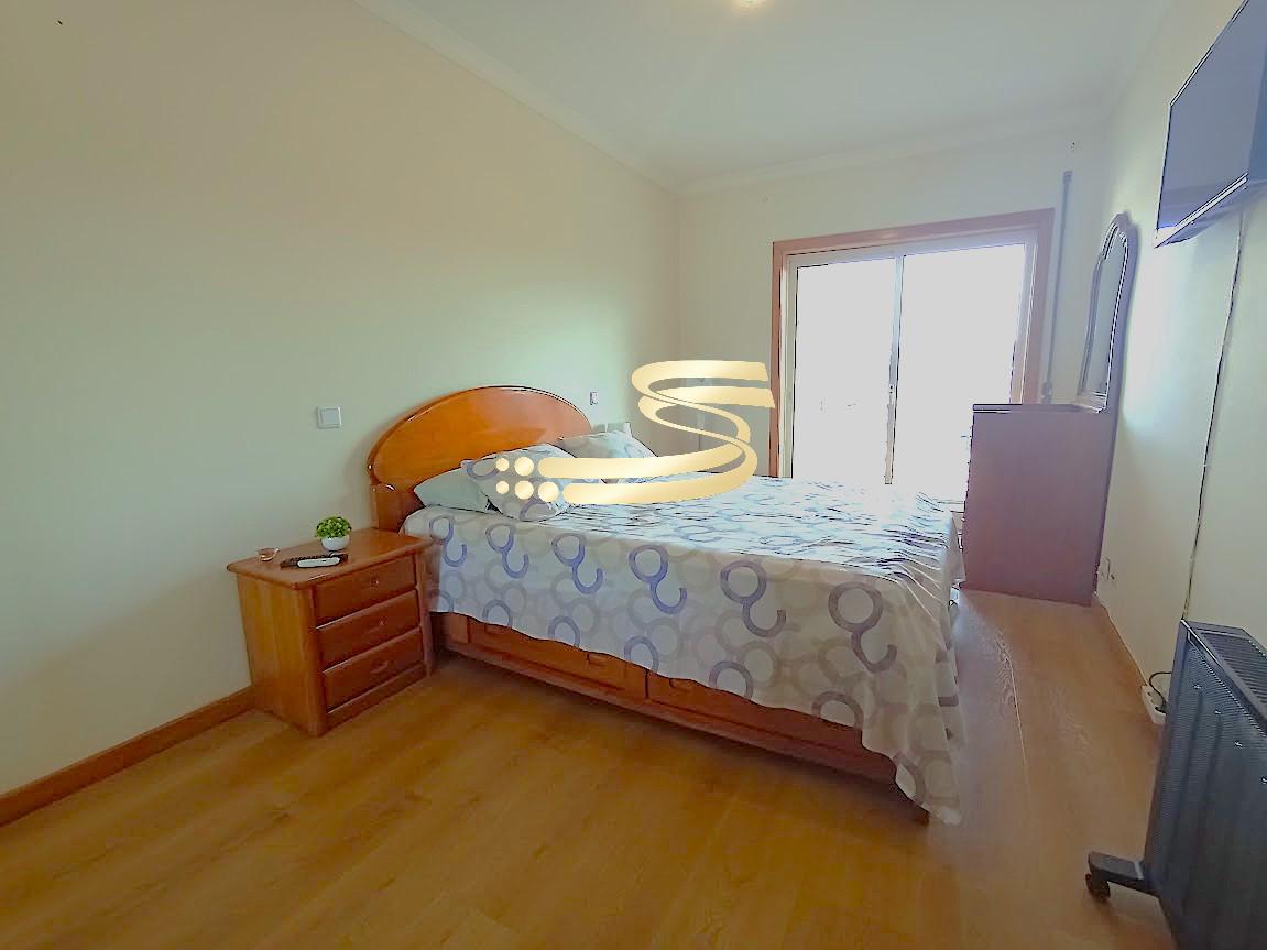 O imóvel dispõe de dois quartos com roupeiros embutidos, sendo um deles suíte com casa de banho privativa com luz natural, proporcionando maior conforto e funcionalidade.